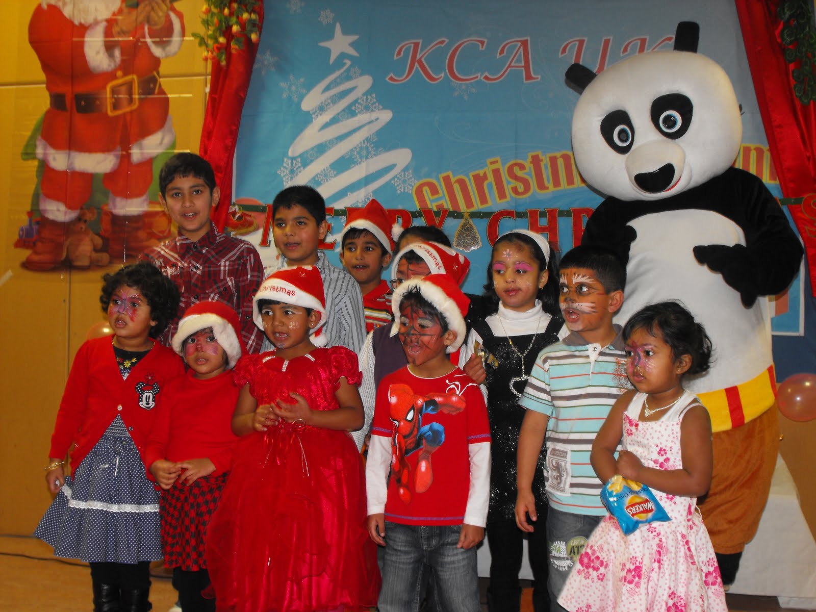 Excitements were high when Character Panda brought KCA UK President Mr. Stany Rodrigues to the stage to welcome the guests. In his welcome speech he urged everyone to enjoy the event as one family. This was followed by Carol singing by kids and surprise entry of Santa at the end of Carol singing. Santa wished everyone a happy feast and gave away prizes to all the kids. Most of the kids were looking very pretty with colors on their faces and dressed with their favorite character, which gave an extra flavor to the event. At the end of this activity Santa opened the bar by sipping his favorite champagne.