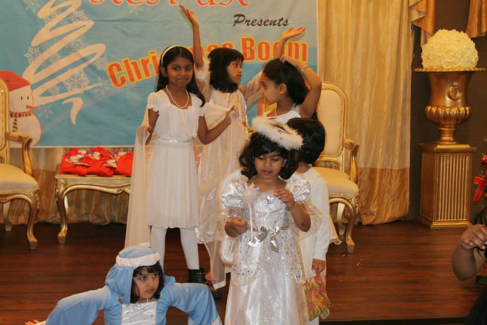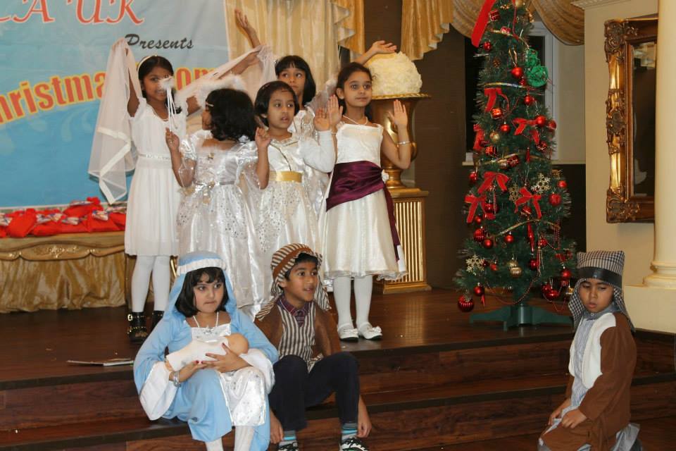 The event was commenced with a melodious song ‘Merry Christmas Everyone’ from Melisha Barboza, well known Master of Ceremony Joseph Sequeira from Warrington gave a friendly start to the event. KCA UK president Santhosh Pinto welcomed the guests and urged them to take complete advantage of all the activities lined up for the evening. KCA UK kids brilliantly performed the nativity play written and coordinated by Cecelia Andrade. Excitements were high when Santa Clause came into the stage, which was followed by Carol Singing by children and ladies. Santa gave away presents to all the children. Benson Moras from Leeds as Santa, along with some outstanding music from DJ Rizwaan from Manchester gave a thrilling beginning to the event.