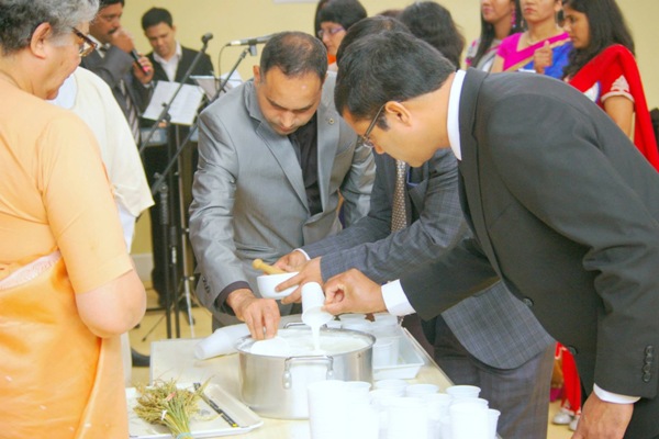 Prior to the end of the mass Harshiya Pereira - Manchester offered thanks to Fr. Agnelo B. De Souza, the Choir Team and all the people for their devotional participation during the holy mass. At the end of the mass elderly people who were amongst the assemblage were invited to the dais to actively participate in mixing the blessed corn with the milk which was later shared with all the guests. Their presence made the guest to remember their family members back in home town and also their near and dear ones.