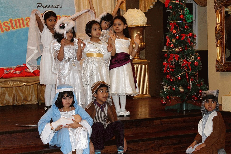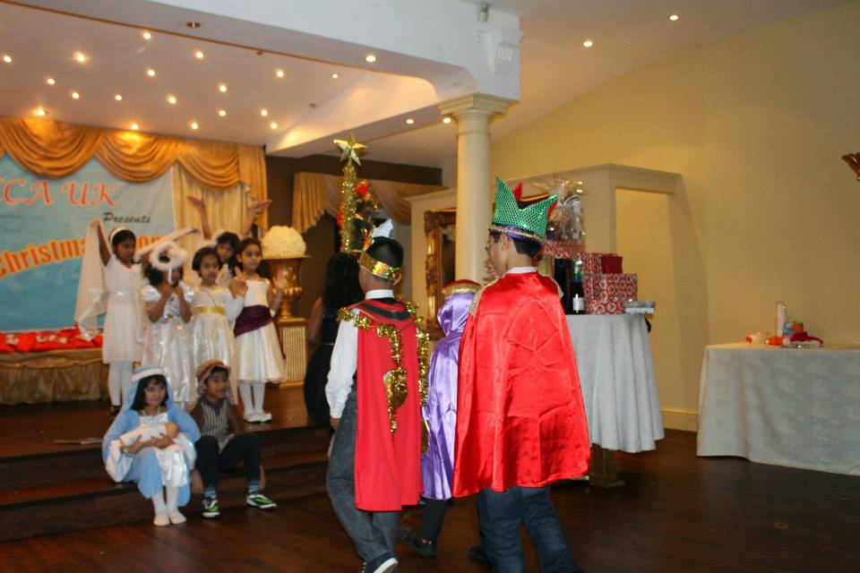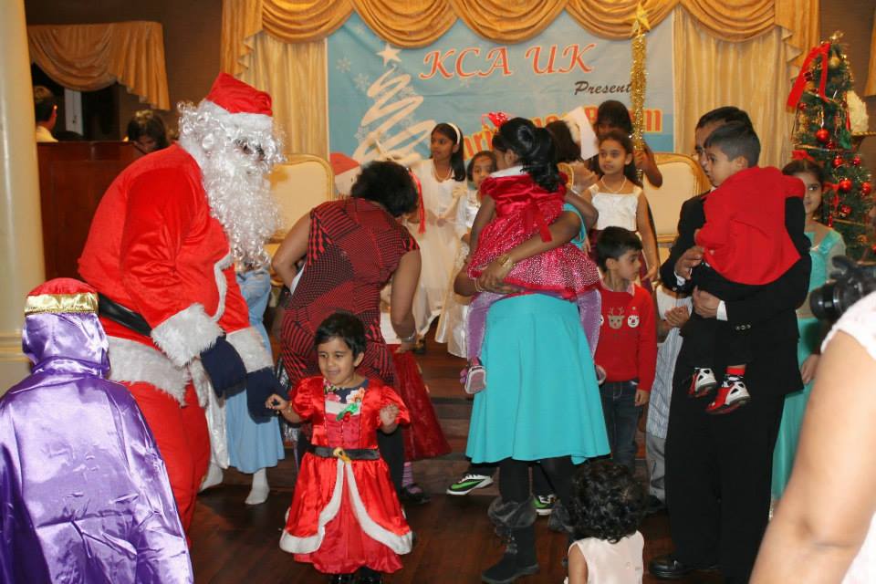The event was commenced with a melodious song ‘Merry Christmas Everyone’ from Melisha Barboza, well known Master of Ceremony Joseph Sequeira from Warrington gave a friendly start to the event. KCA UK president Santhosh Pinto welcomed the guests and urged them to take complete advantage of all the activities lined up for the evening. KCA UK kids brilliantly performed the nativity play written and coordinated by Cecelia Andrade. Excitements were high when Santa Clause came into the stage, which was followed by Carol Singing by children and ladies. Santa gave away presents to all the children. Benson Moras from Leeds as Santa, along with some outstanding music from DJ Rizwaan from Manchester gave a thrilling beginning to the event.