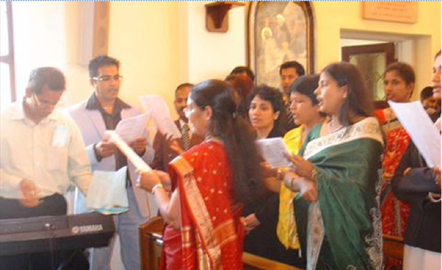 The mass was made more ebullient by the awesome choristers followed by the active participation of all the members who had gathered here on this occasion. The music by Thomas (Liverpool) made the entire ceremony more exuberant integrating the voices of the total assemblage with their hymns “Sakkad Sangata Melieam” and “Morieak Hogolsieam”.